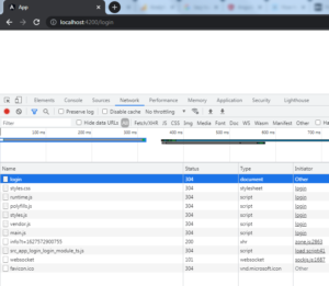 1. Lets hit login route first : http://localhost:4200/login , So in browsers network tab you will be able to see only login module will be loaded not the registration one –