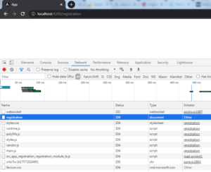 2.Similarly lets hit registration route http://localhost:4200/registration , So in browsers network tab you will be able to see only registration module will be loaded not the login one –