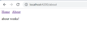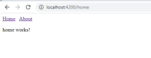 Here you can see if path is blank or /home that time HomeComponent is loading. If path is /about then AboutComponent is loading.  Now lets see the  output in browser –