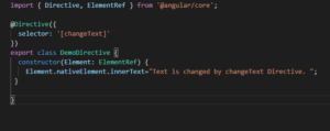 In the above example, there is a class called ChangeTextDirective and a constructor, which takes the element of type ElementRef, which is mandatory. The element has all the details to which the Change Directive is applied.