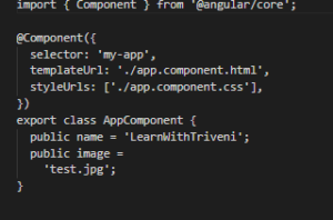 In the above example you can see that name and image is two variable. Which is used in html file as property binding. You can see these variables are binded inside the square [] bracket.